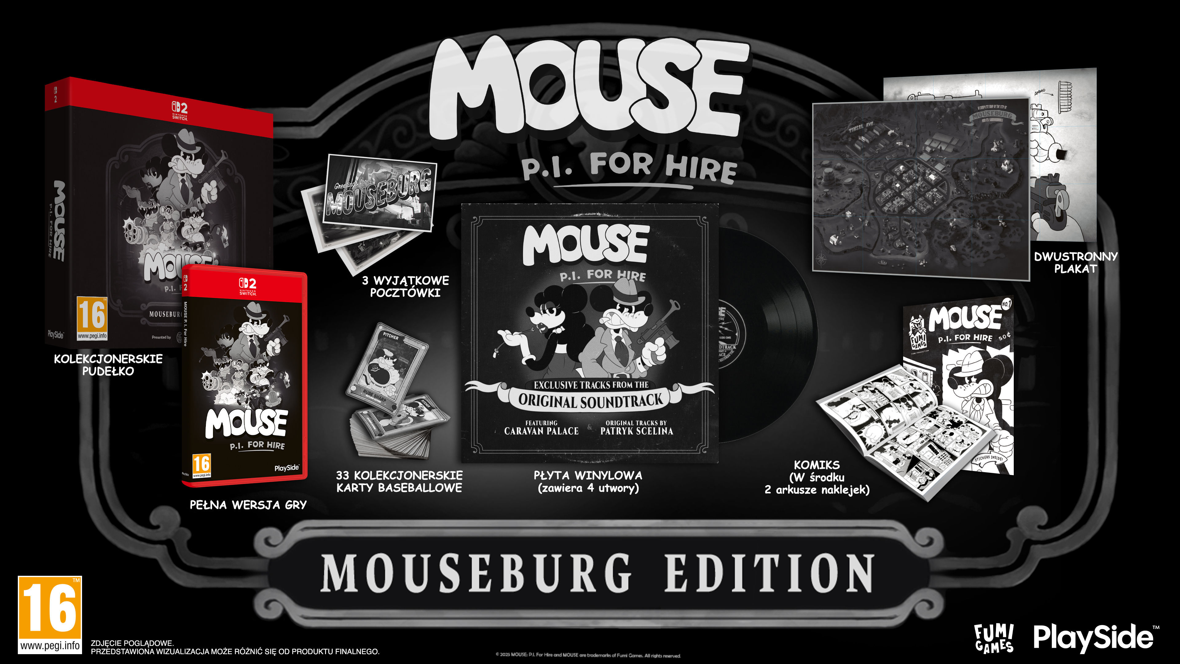 Gra wideo (płyta dla PlayStation 5 i Xbox Series X, kartridż do Nintendo Switch 2 oraz kod w pudełku na PC), zawierająca wszystkie treści Mouseburg Edition, zapakowane w kolekcjonerskie pudełko.