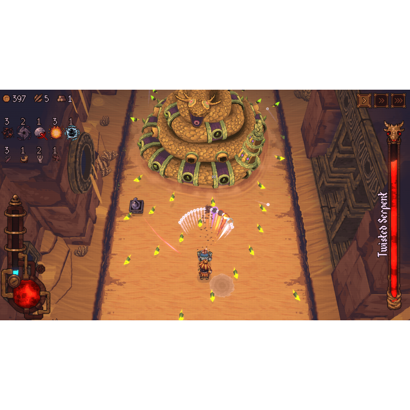 W tej czeluści gnieżdżą się bowiem barbarzyńskie stwory, koniecznie chcące zakończyć twoją wyprawę, zanim ta jeszcze się zacznie. Wyposażony w coraz większy arsenał pocisków nasyconych magią, przebij się przez liczne poziomy z coraz trudniejszymi przeszkodami, aby zdobyć łupy i odbudować Nowe Kulopolis.