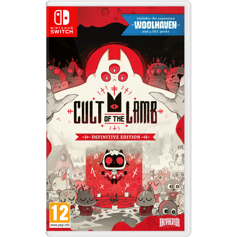 Cult of the Lamb: Definitive Edition zawiera pełną wersję podstawową gry wraz z Cultist Pack, Heretic Pack, Sinful Pack, Pilgrim Pack, DLC Woolhaven oraz aktualizacją Unholy Alliance – wszystko w jednym zestawie i w pełni dostępne na kartridżu/płycie!