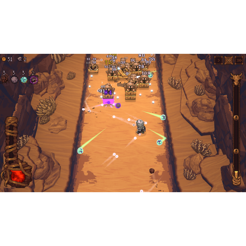 W tej czeluści gnieżdżą się bowiem barbarzyńskie stwory, koniecznie chcące zakończyć twoją wyprawę, zanim ta jeszcze się zacznie. Wyposażony w coraz większy arsenał pocisków nasyconych magią, przebij się przez liczne poziomy z coraz trudniejszymi przeszkodami, aby zdobyć łupy i odbudować Nowe Kulopolis.