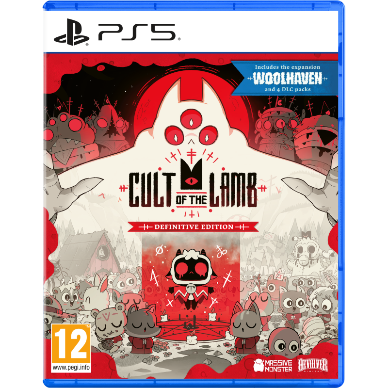 Cult of the Lamb: Definitive Edition zawiera pełną wersję podstawową gry wraz z Cultist Pack, Heretic Pack, Sinful Pack, Pilgrim Pack, DLC Woolhaven oraz aktualizacją Unholy Alliance – wszystko w jednym zestawie i w pełni dostępne na kartridżu/płycie!